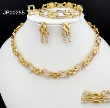 YTJX 4 Pcs Wedding Jewelry Set Fine Zircon Necklace Bracelet Earring Ring For African Dubai Gold Plated Jewellery Accessories