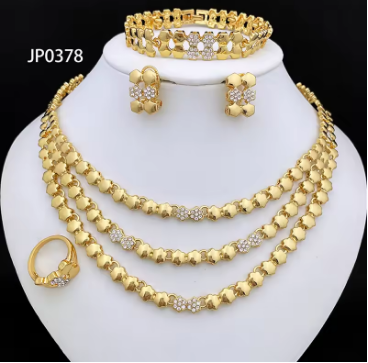 YTJX 4 Pcs Wedding Jewelry Set Fine Zircon Necklace Bracelet Earring Ring For African Dubai Gold Plated Jewellery Accessories